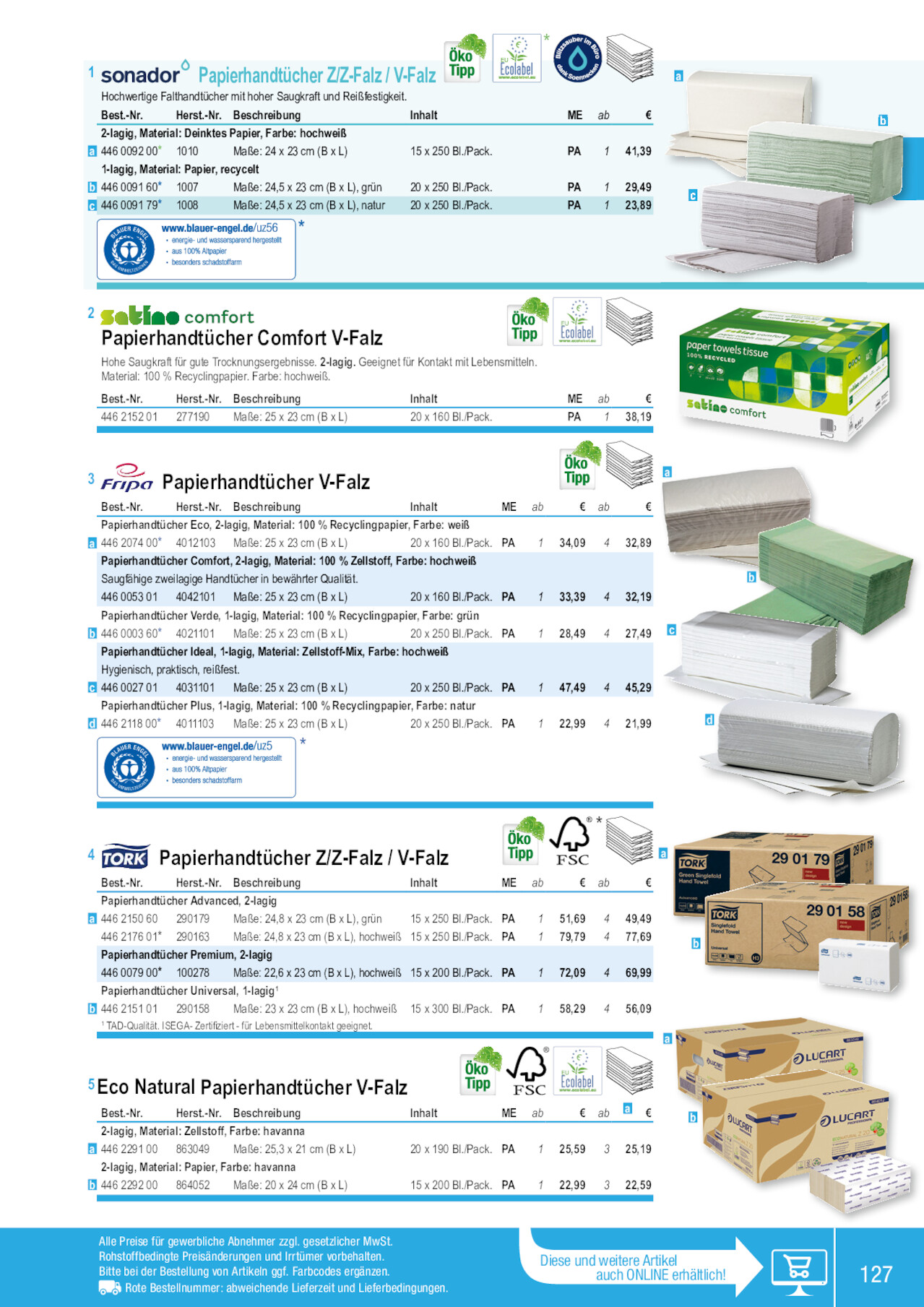 Seite 127: 1 Papierhandtücher Z/Z-Falz / V-Falz Hochwertige Falthandtücher mit hoher Saugkraft und Reißfestigkeit....