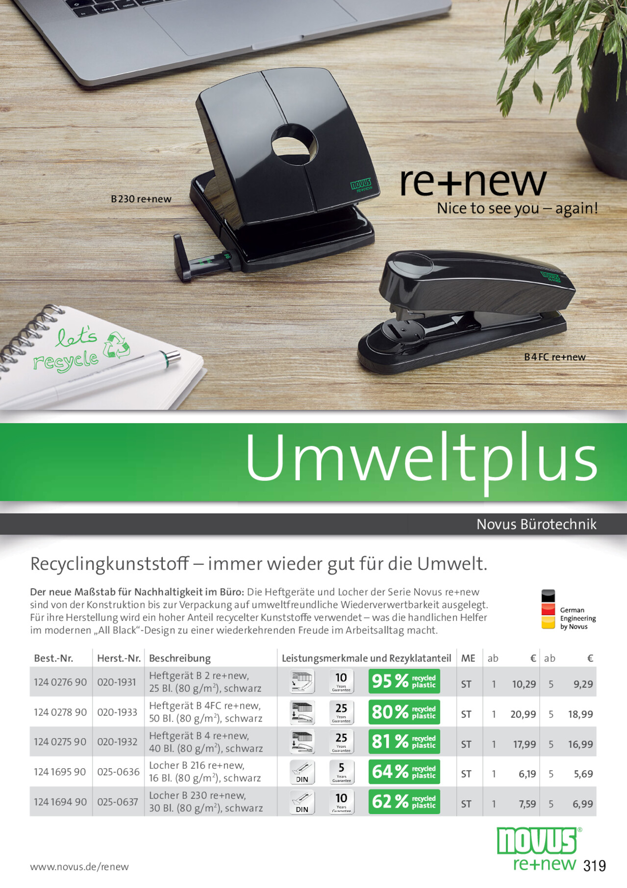 Seite 319: B re+new B FC re+new Umweltplus Novus Bürotechnik Recyclingkunststoff – immer wieder gut für d...