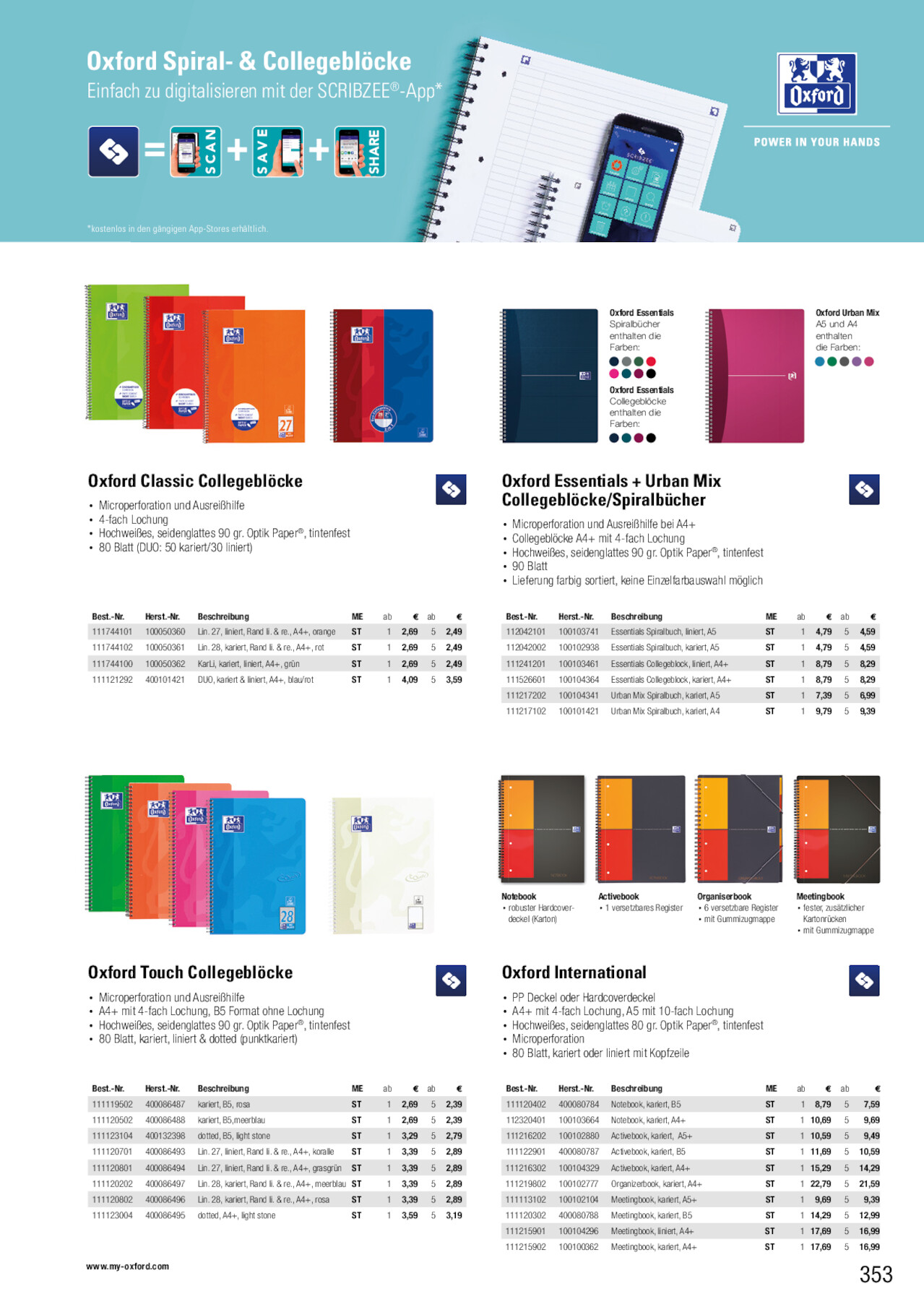 Seite 353: SCAN SAVE SHARE Oxford Spiral- & Collegeblöcke Einfach zu digitalisieren mit der SCRIBZEE®-App* =++ *kostenlos...