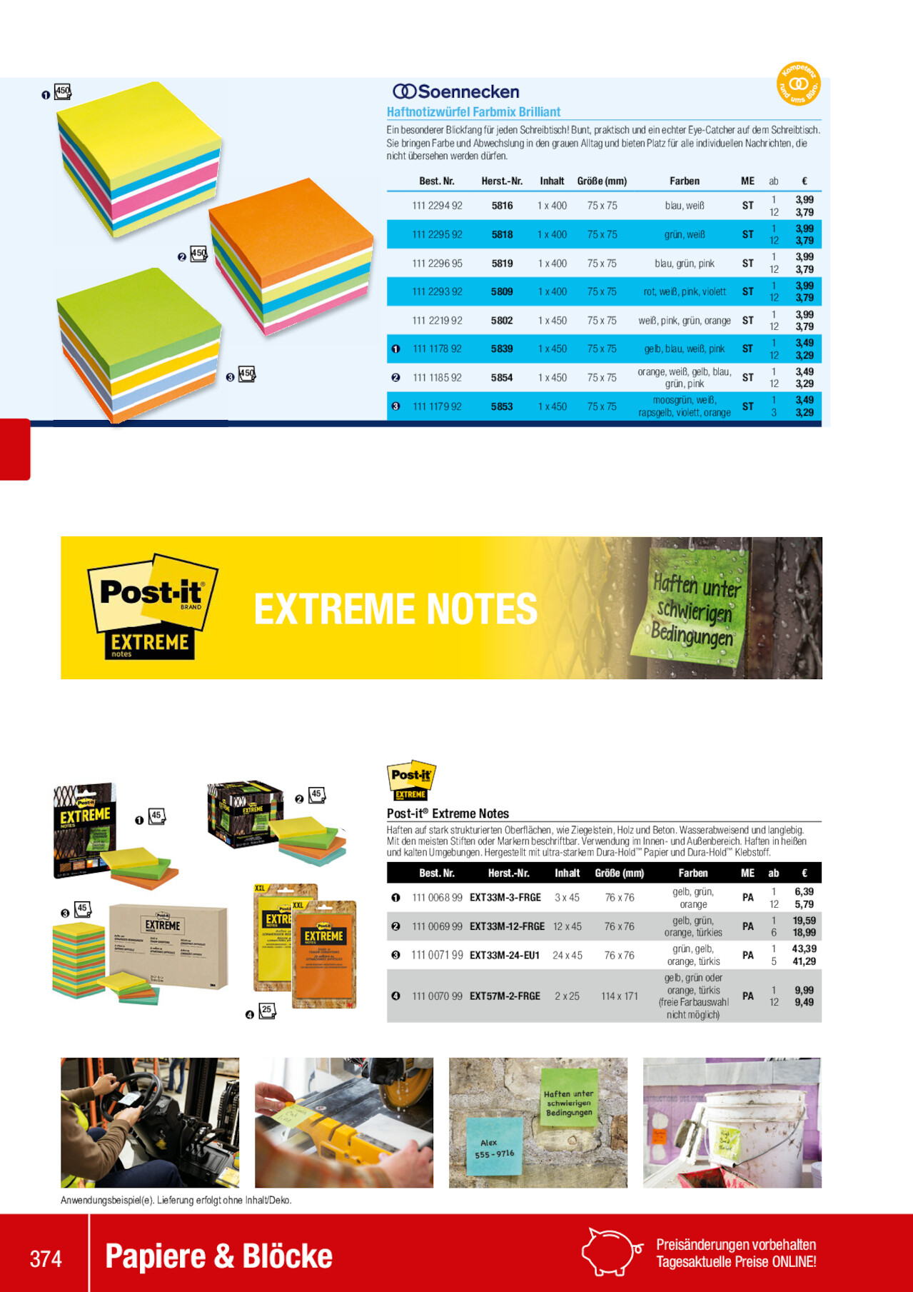 Seite 374: 1 450 2 450 3 450 Haftnotizwürfel Farbmix Brilliant Ein besonderer Blickfang für jeden Schreibtisch! Bunt, p...