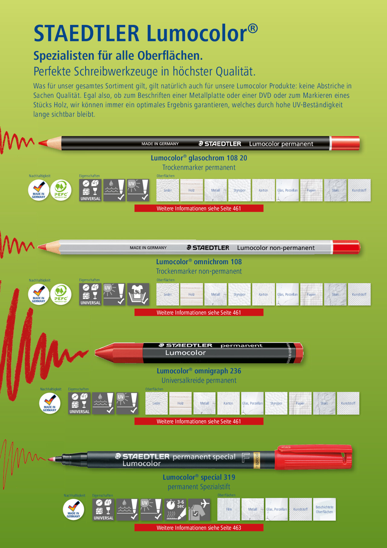 Seite 453: STAEDTLER Lumocolor® Spezialisten für alle Oberflächen. Perfekte Schreibwerkzeuge in höchster Q...