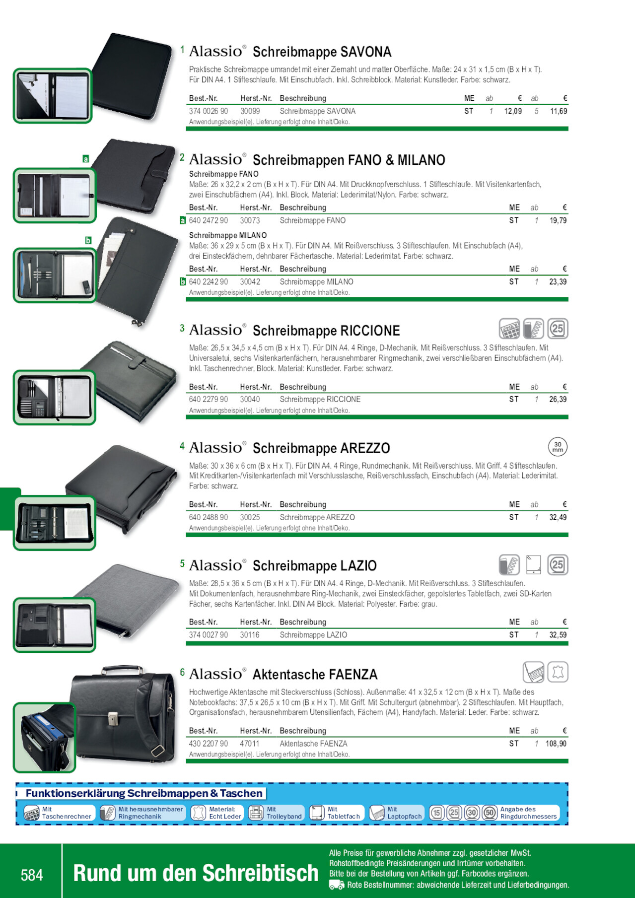 Seite 584: 1 Schreibmappe SAVONA Praktische Schreibmappe umrandet mit einer Ziernaht und matter Oberfläche. Maße: ...