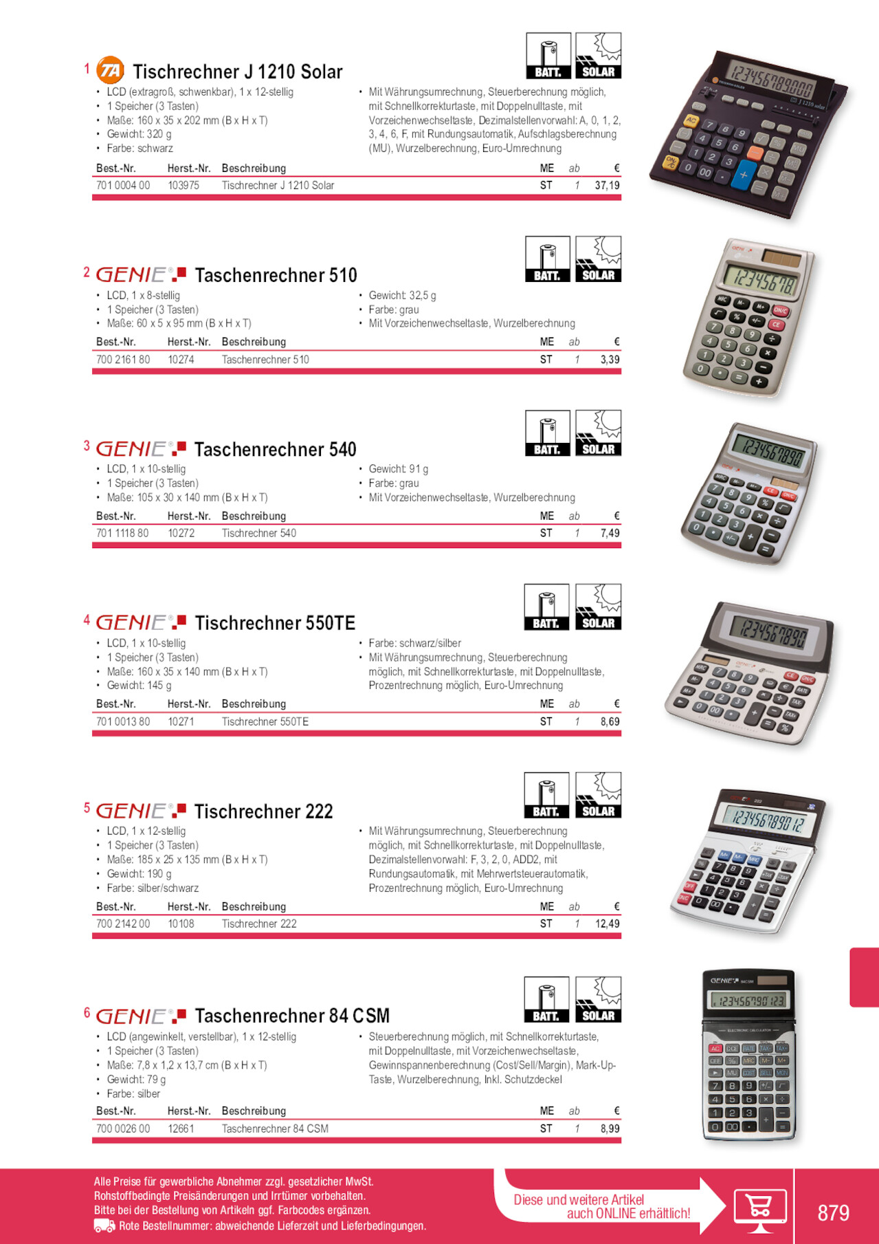 Seite 879: 1 Tischrechner J 1210 Solar • LCD (extragroß, schwenkbar), 1 x 12-stellig • 1 Speicher (3 Tasten) &bull...