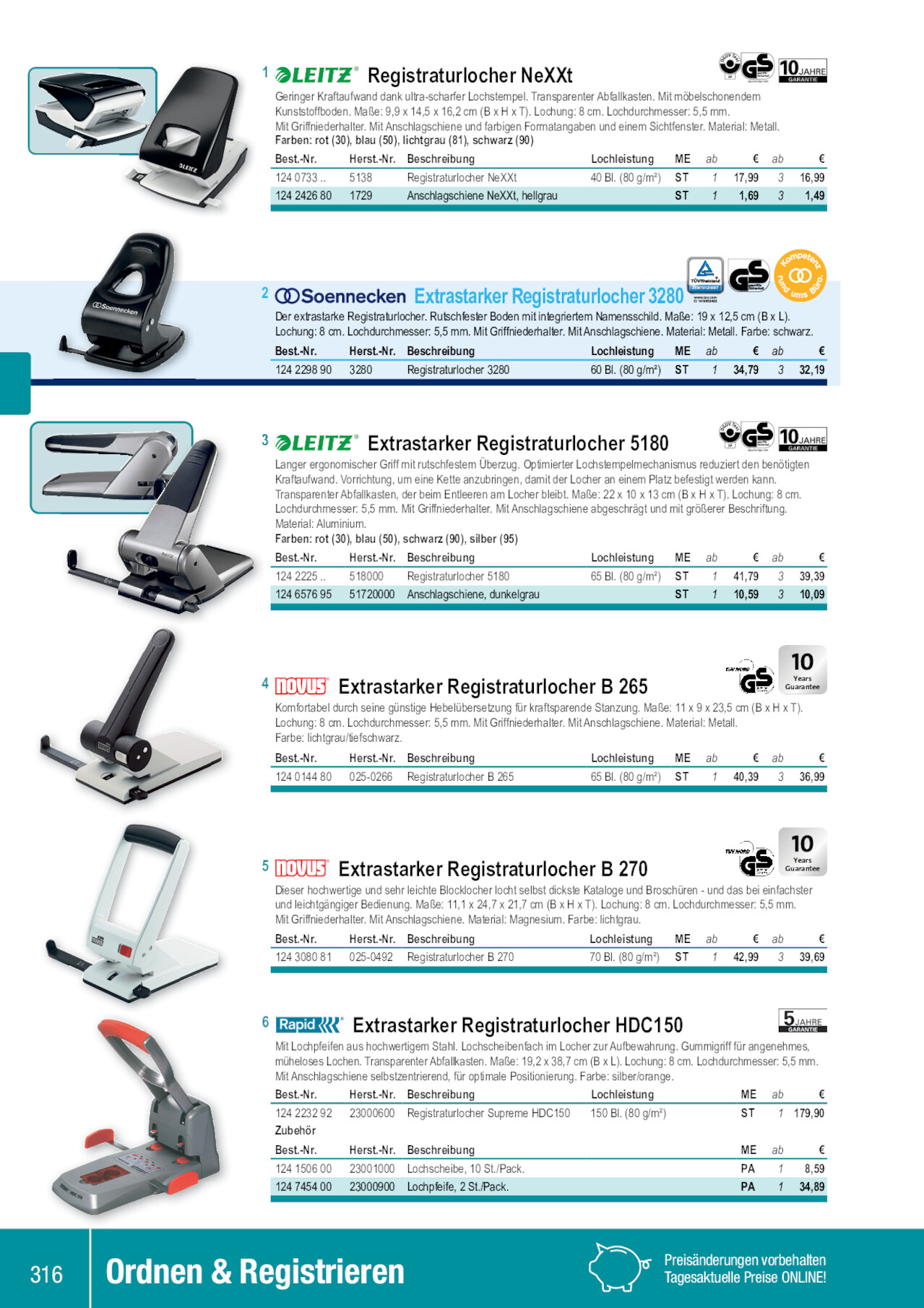 Seite 316: 1 Registraturlocher NeXXt Geringer Kraftaufwand dank ultra-scharfer Lochstempel. Transparenter Abfallkasten. Mit mö...
