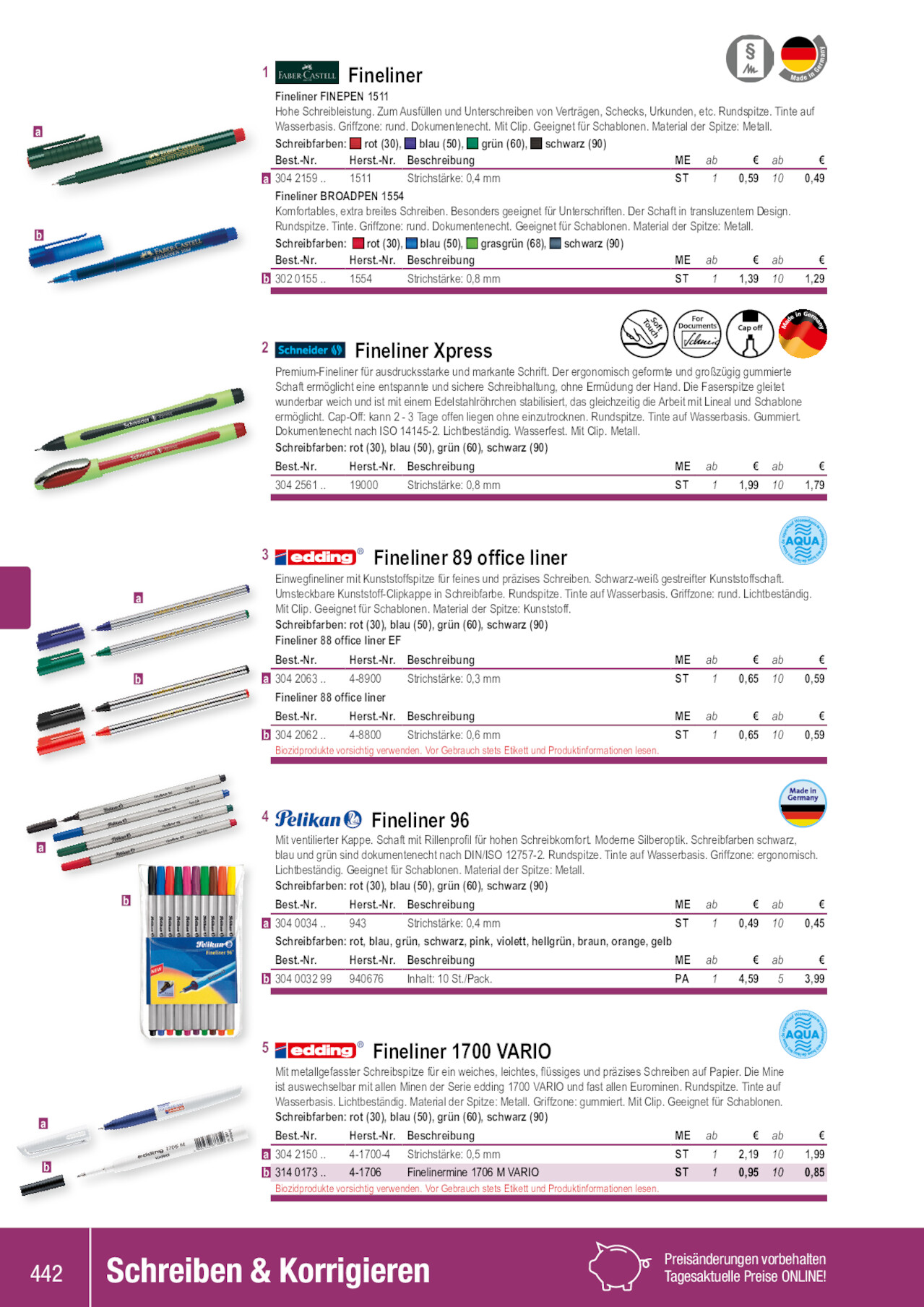 Seite 442: 1 Fineliner Fineliner FINEPEN 1511 Hohe Schreibleistung. Zum Ausfüllen und Unterschreiben von Verträgen, Sche...