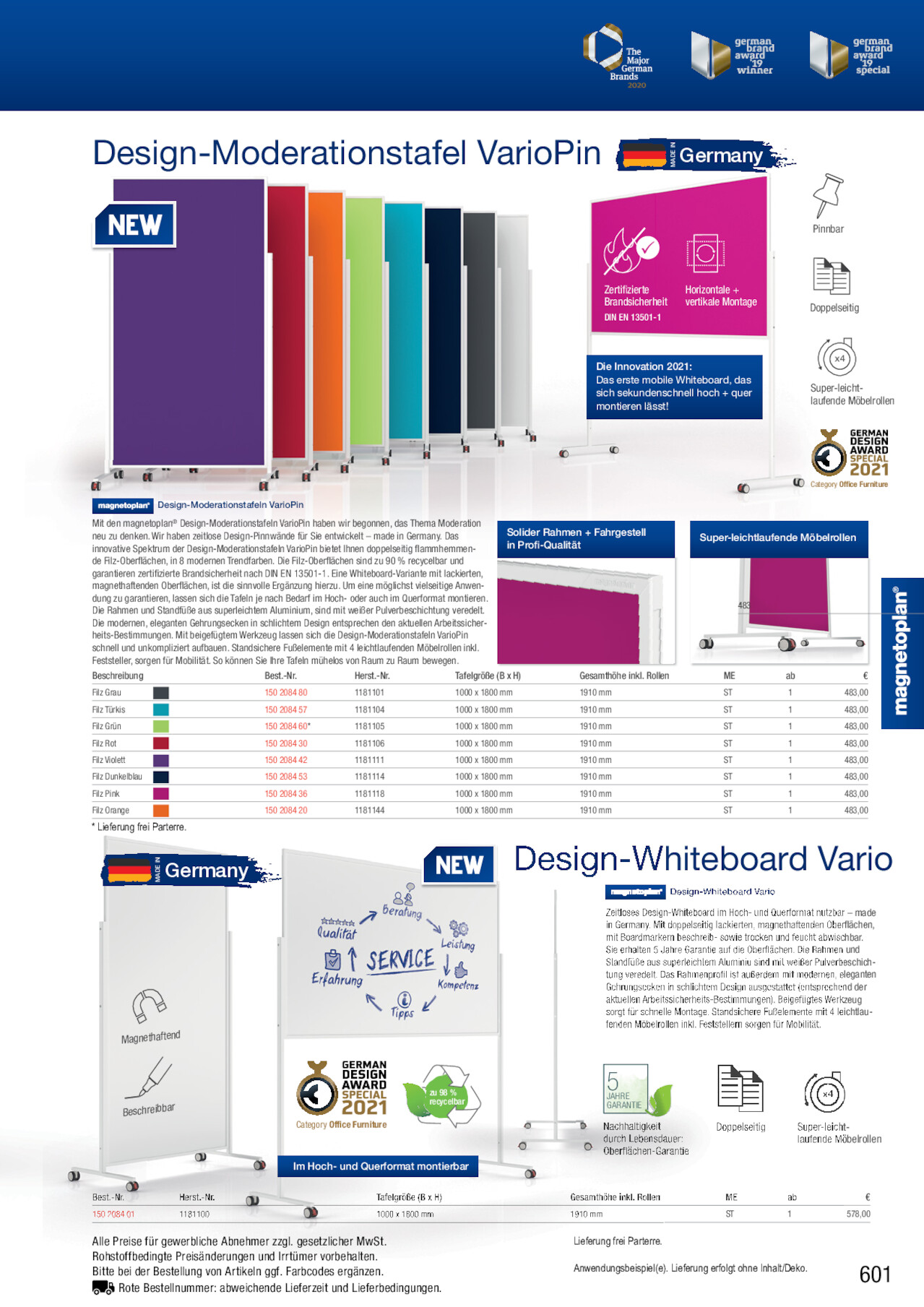 Seite 601: Design-Moderationstafel VarioPin MADE IN Germany Pinnbar Zertifizierte Brandsicherheit DIN EN 13501-1 Horizon...