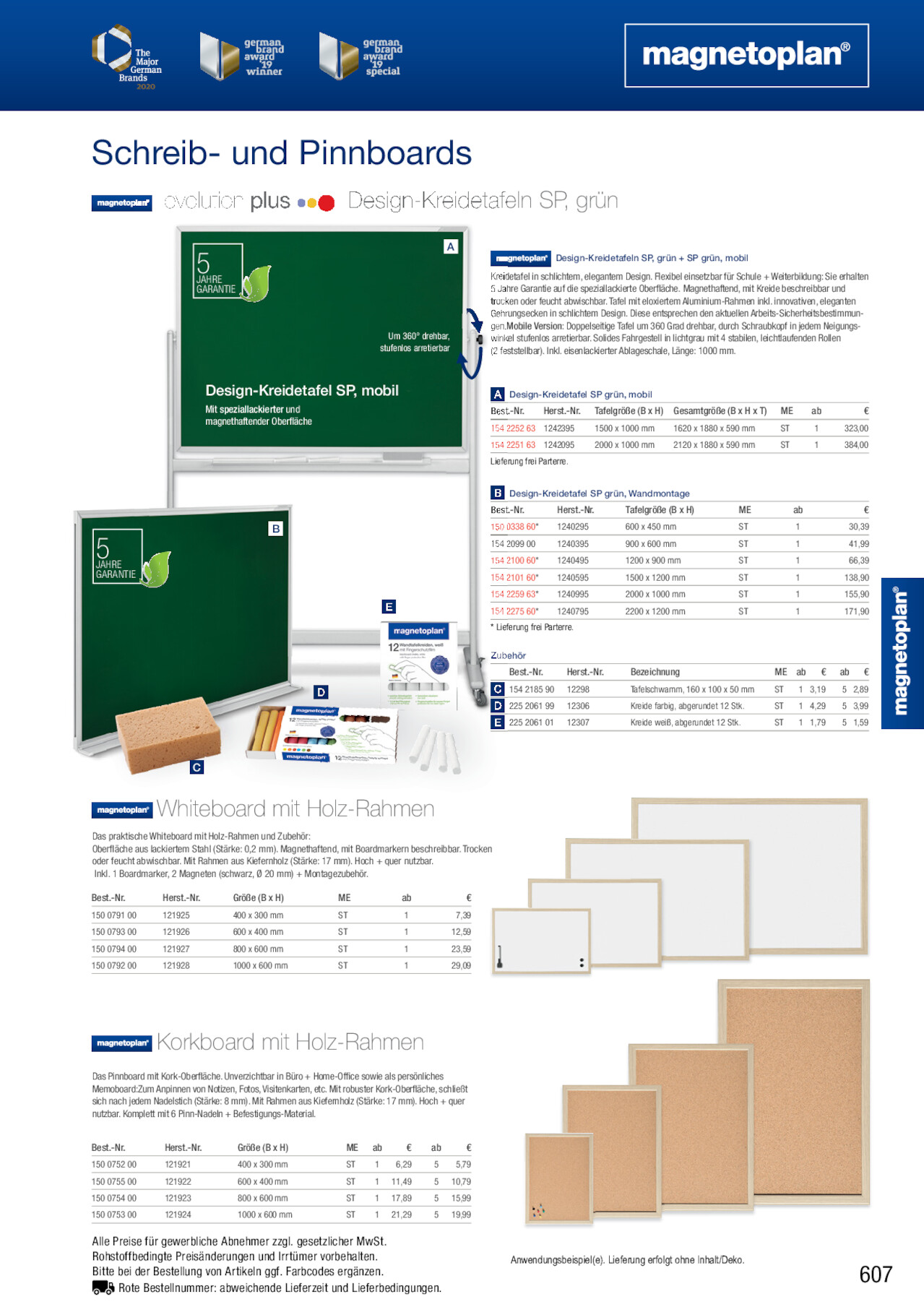 Seite 607: Schreib- und Pinnboards evolution plus Design-Kreidetafeln SP, grün 5 JAHRE GARANTIE 5 JAHRE GARANTIE A Um 360&...